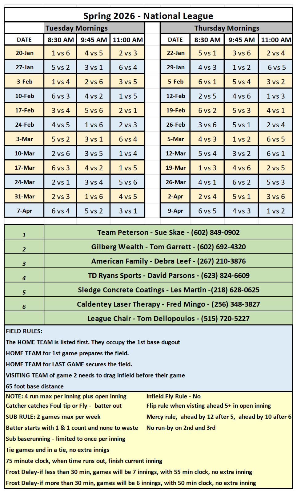 • NL Schedule