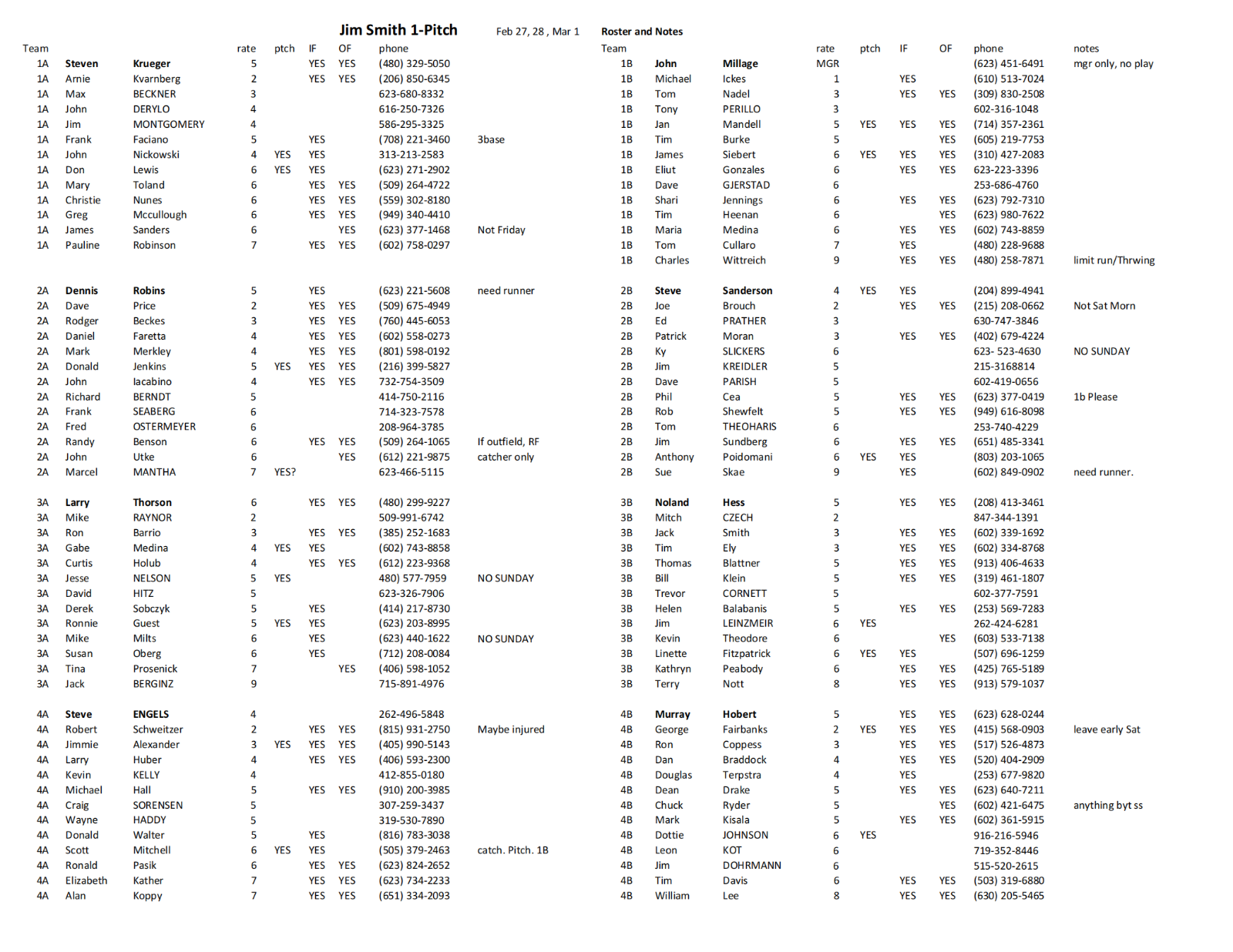 Co-ed Roster
