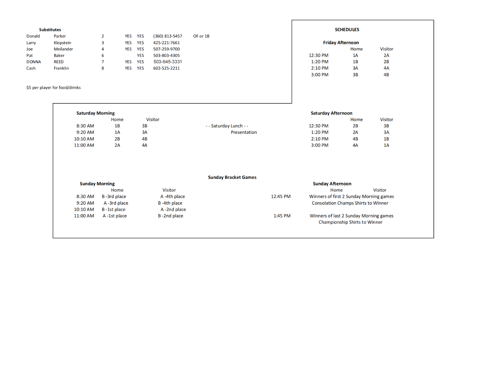 Co-ed Schedule