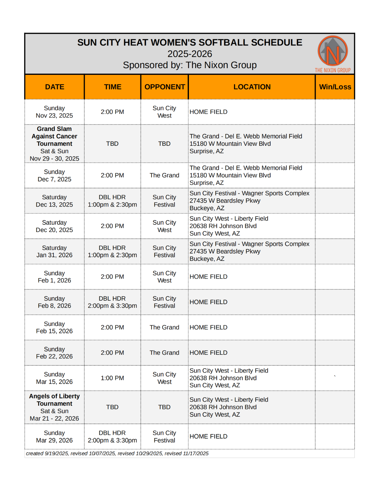 December 29/30, 2025 - Thursday & Friday - One Pitch Tournament - Ricky & Mary Toland