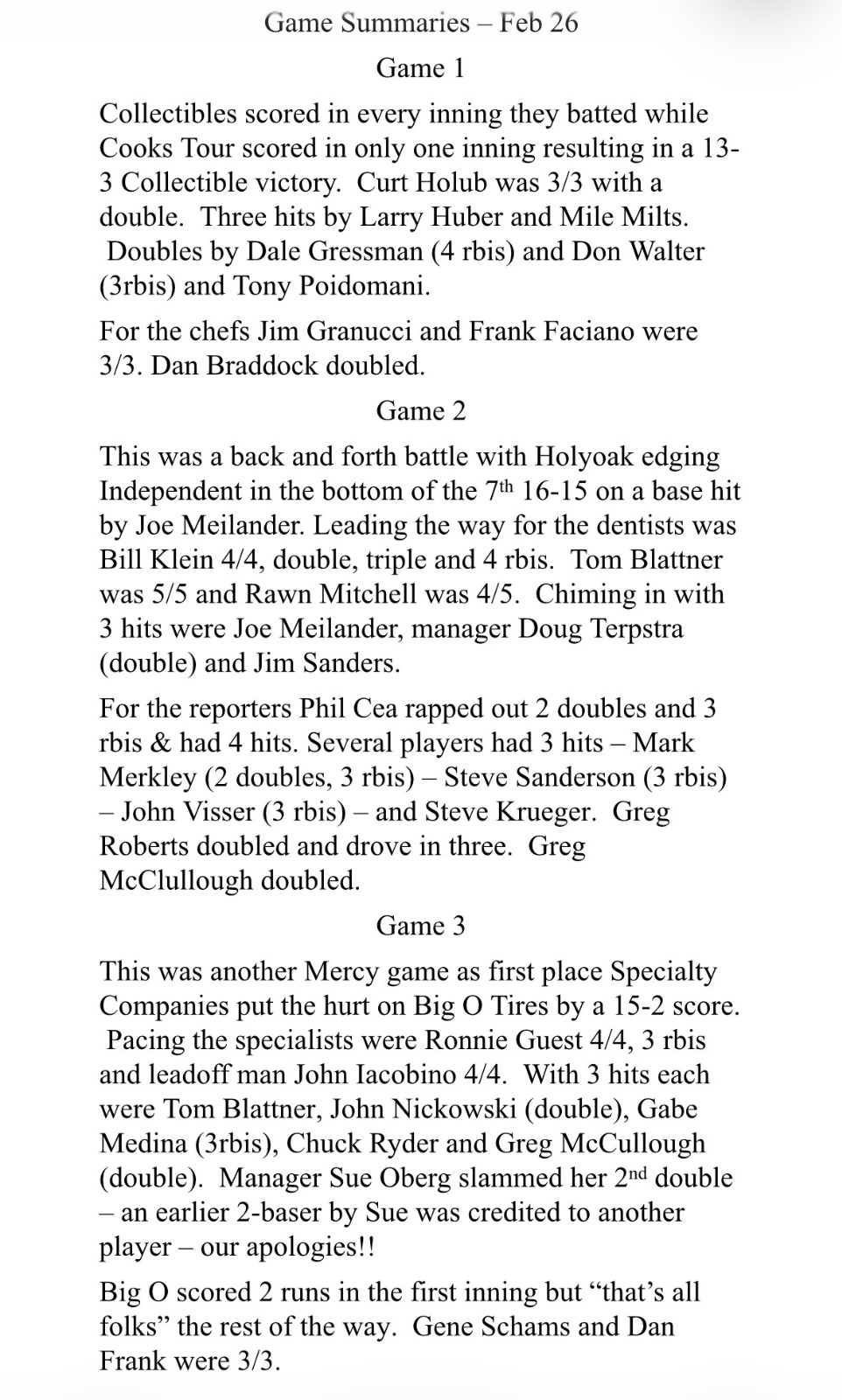 • CL Game Summaries
