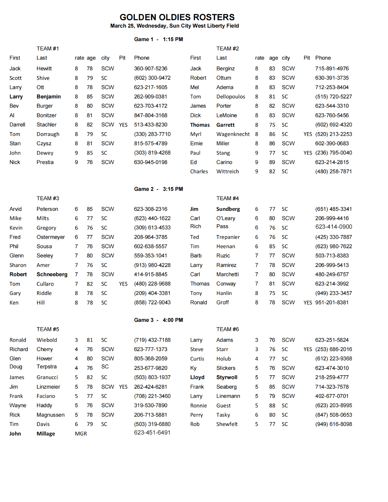 NL Roster