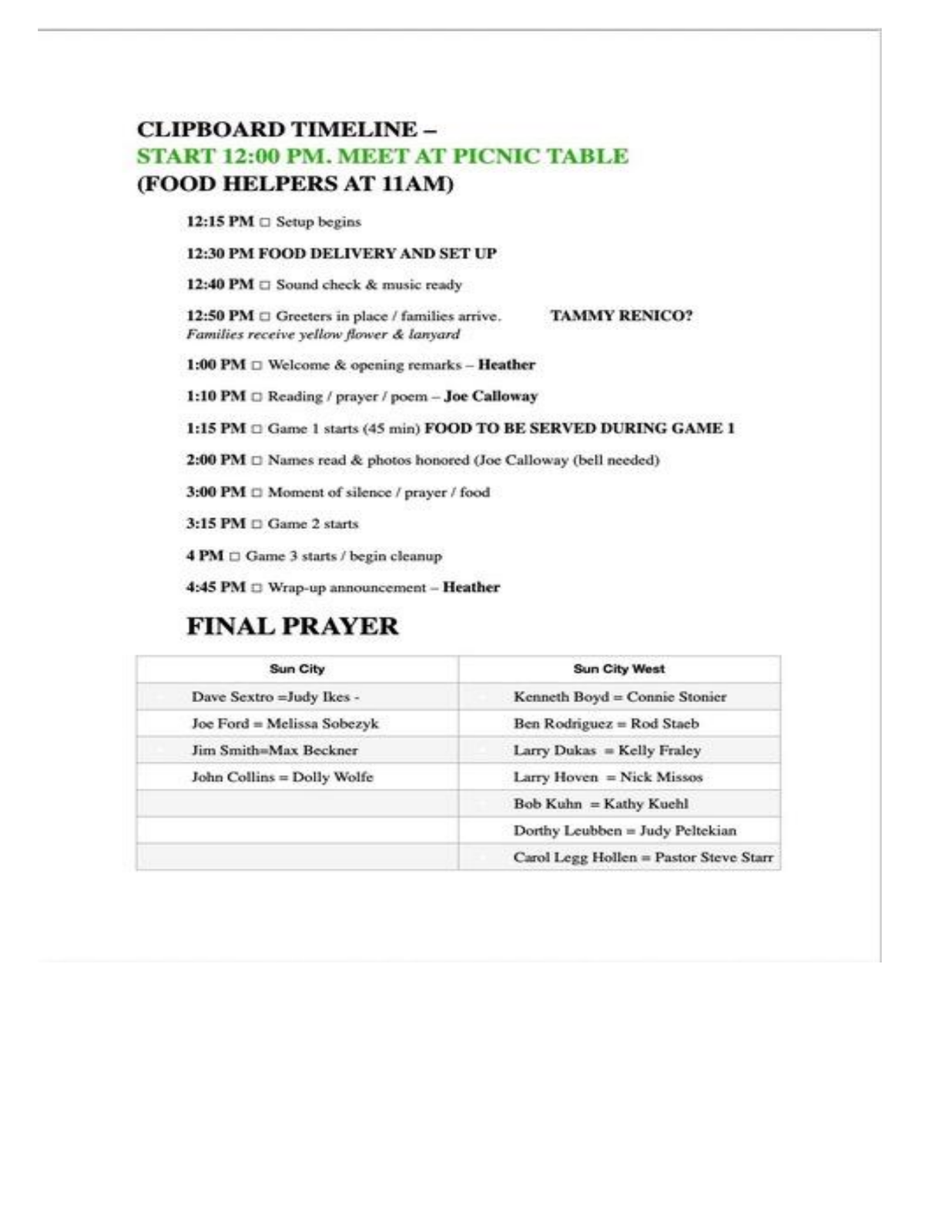 Co-ed Schedule